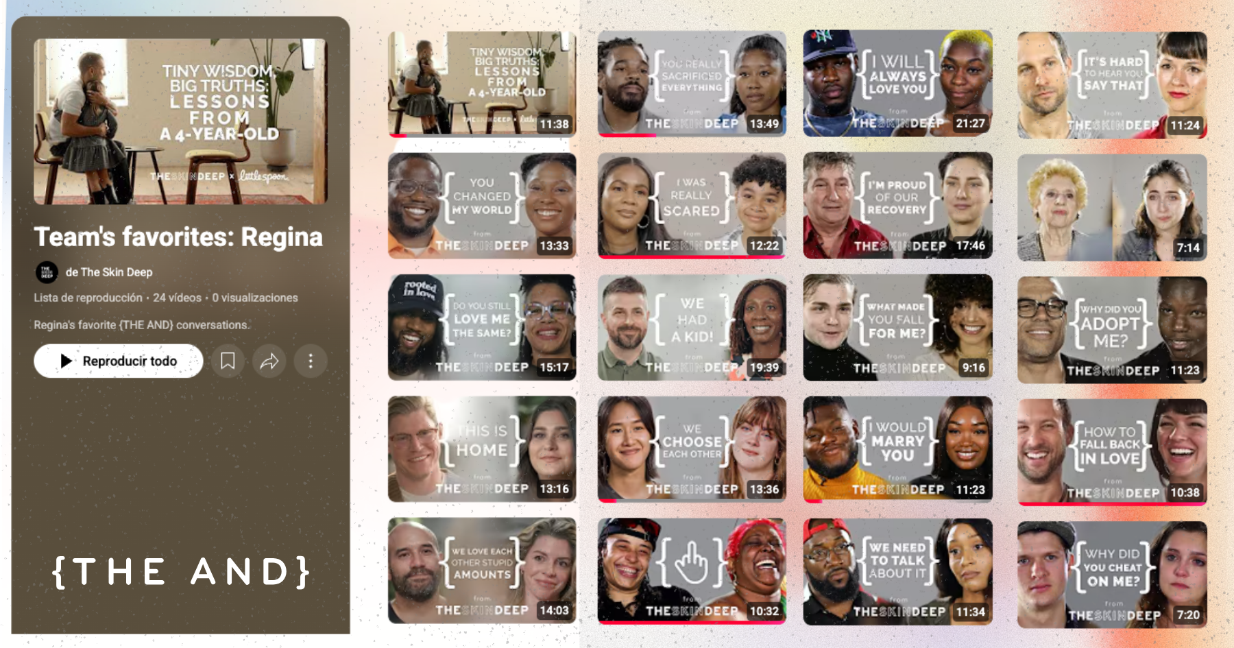We’ve been producing the Emmy-award winning series {THE AND} since 2014. Witness unique windows into real human relationships, as people from across the world explore their connection and the space between them.